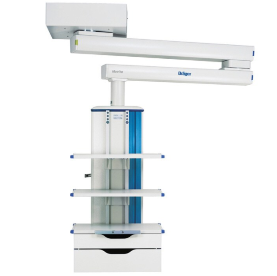 Draeger Movita ceiling supply unit offers a variety of options while providing the user with efficient work-rate. Its media column which comes with four varieties of length options and the media panels for accommodation of power sockets, data terminals, etc. along with the vertical rails that can bare the load up to 300 Kg are of great importance. The usage of stainless steel tubesdirectly connected to the Movita media head, gives access to wide range of components.